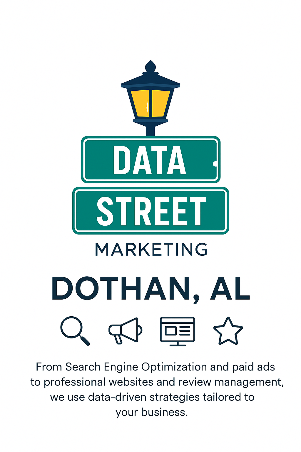 At Data Street Marketing, we specialize in helping Dothan, AL businesses stand out and grow. Whether you’re a small business, non-profit or corporation, your customers are searching online first — and that’s where we come in. We combine smart data-driven strategies with proven local marketing tactics to make sure your business is found when and where it matters most.